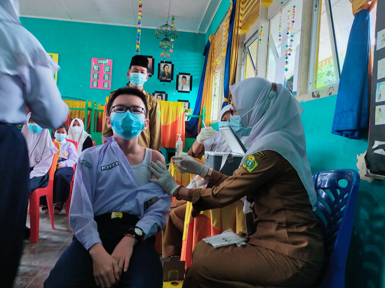 ia menambahkan kegiatan pada hari ini, dilaksanakan hingga siang untuk melakukan vaksinasi kepada seluruh siswa yang belum di vaksin, untuk total keseluruhan siswa-siswi kurang lebih 571 siswa.