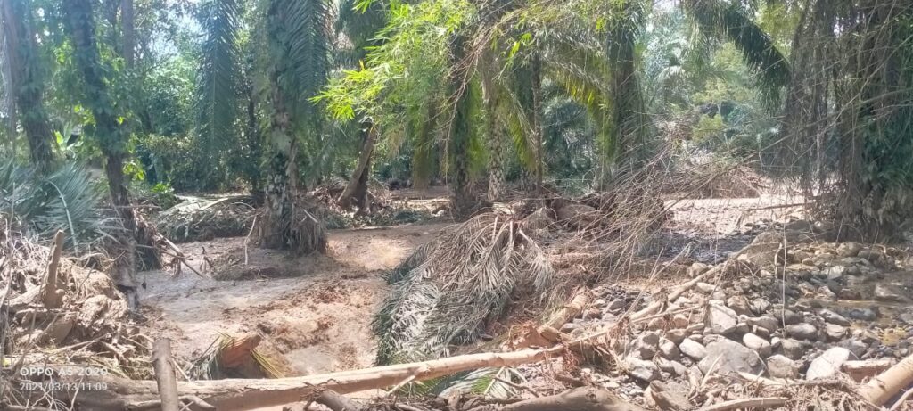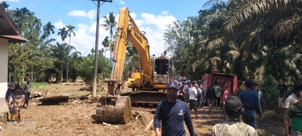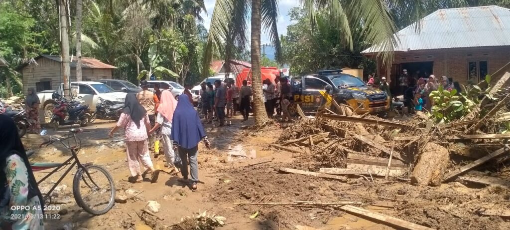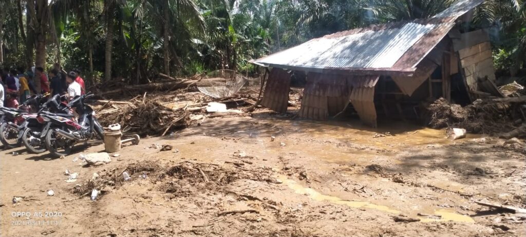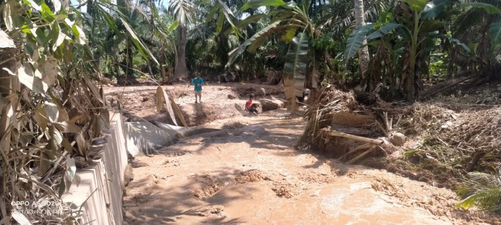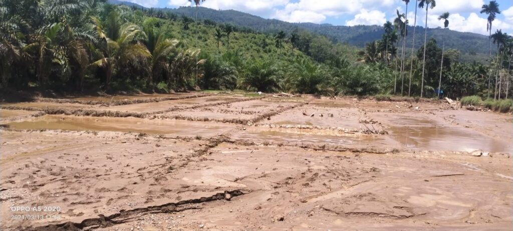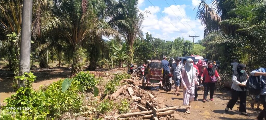 Kades Julpan mengatakan tidak ada korban jiwa atas kejadian banjir bandang, namun situasi akses jalan menjadi rusak dipenuhi lumpur dan jembatan desa juga putus.