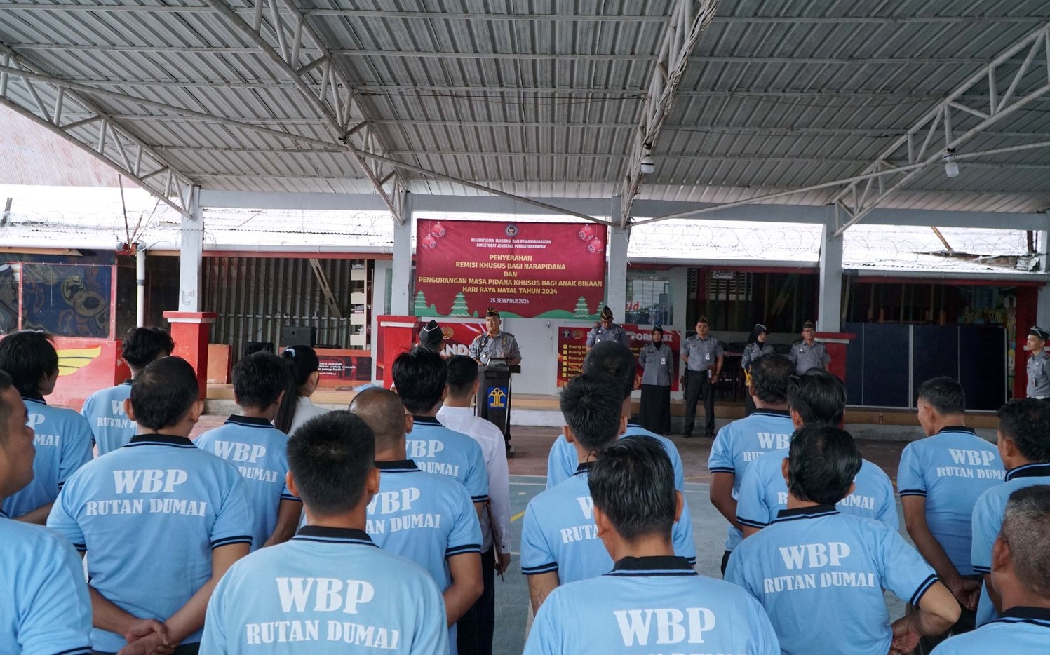 Dumai, Potretnusantara.id – Sebanyak 69 warga binaan di Rumah Tahanan Negara Kelas IIB (Rutan) Dumai menerima remisi khusus Natal tahun 2024. Penyerahan remisi tersebut dilakukan langsung oleh Kepala Rutan Dumai, Yudhi Khairudin, dalam acara yang digelar di lapangan serbaguna Rutan Dumai, Rabu (25/12).
