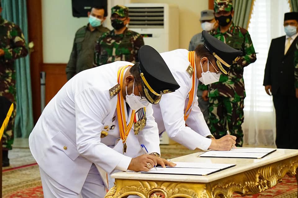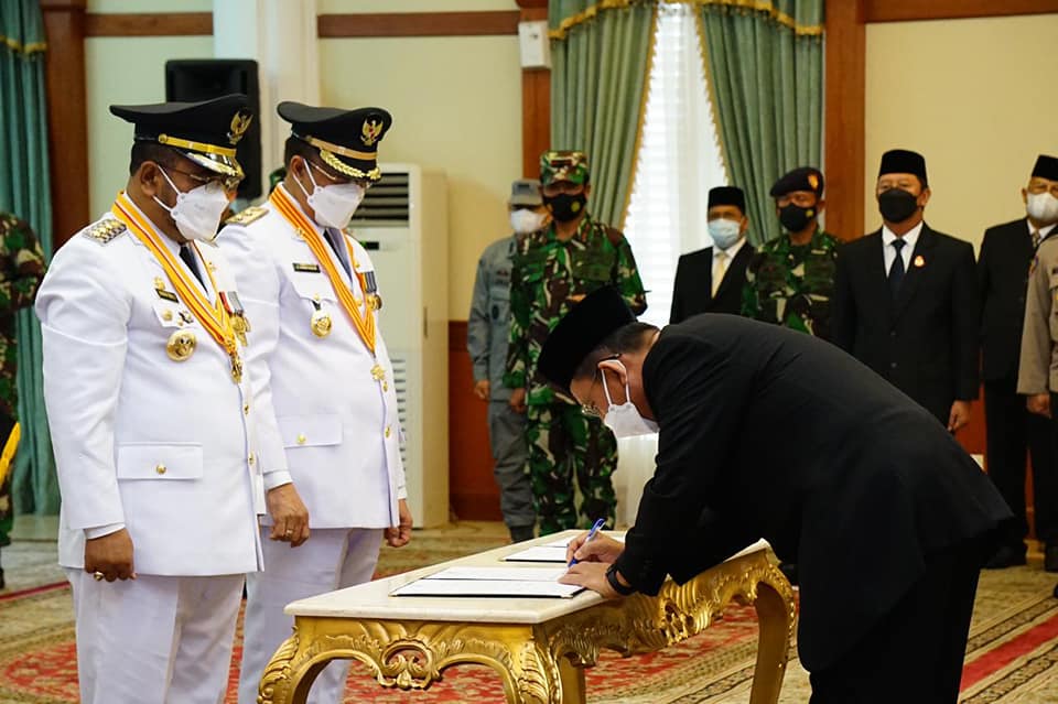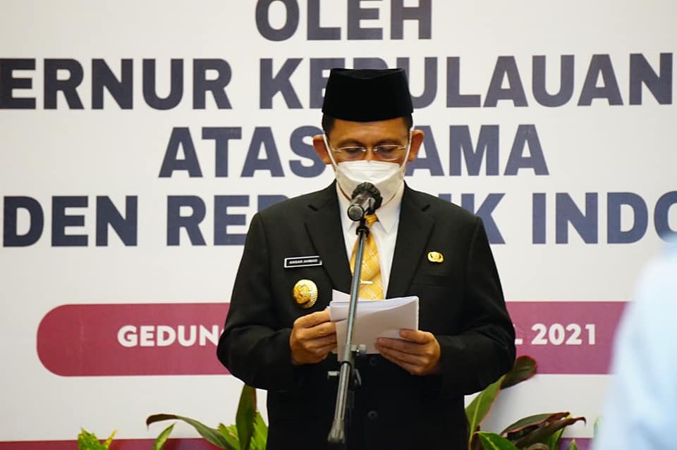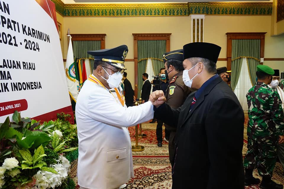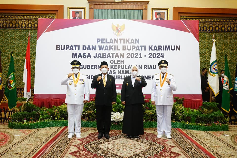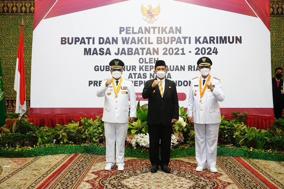 ADVERTORIAL, Pemkab Karimun – Gubernur Kepulauan Riau, Ansar Ahmad resmi melantik Bupati Karimun Dr. H. Aunur Rafiq, M.Si, dan Wakil Bupati Karimun H. Anwar Hasyim, M.Si Periode 2021-2024 di Gedung Daerah, Tanjungpinang. Senin (26/4).