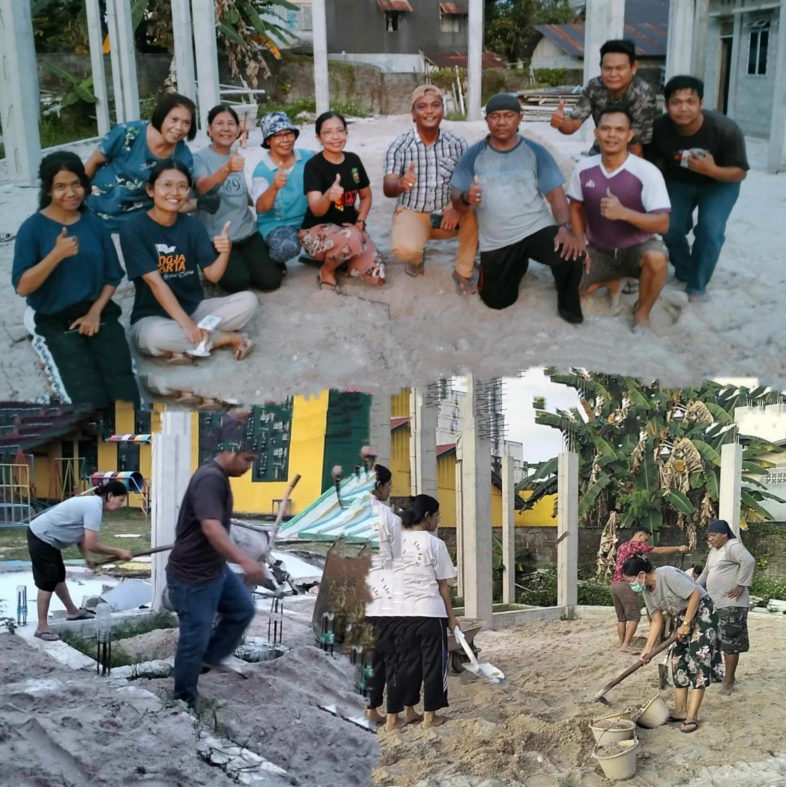 ‘Umat Melaksanakan Gotong Royong penimbunan kembali dalam kontruksi Pondasi Gereja mengunakan pasir, sekitar 30 orang umat ikut bergotong royong yang dimulai dari pukul 6 pagi sampai pukul 10, Sore dimulai dari pukul 16,00 Wib sampai 17,30 Wib,” ujarnya.