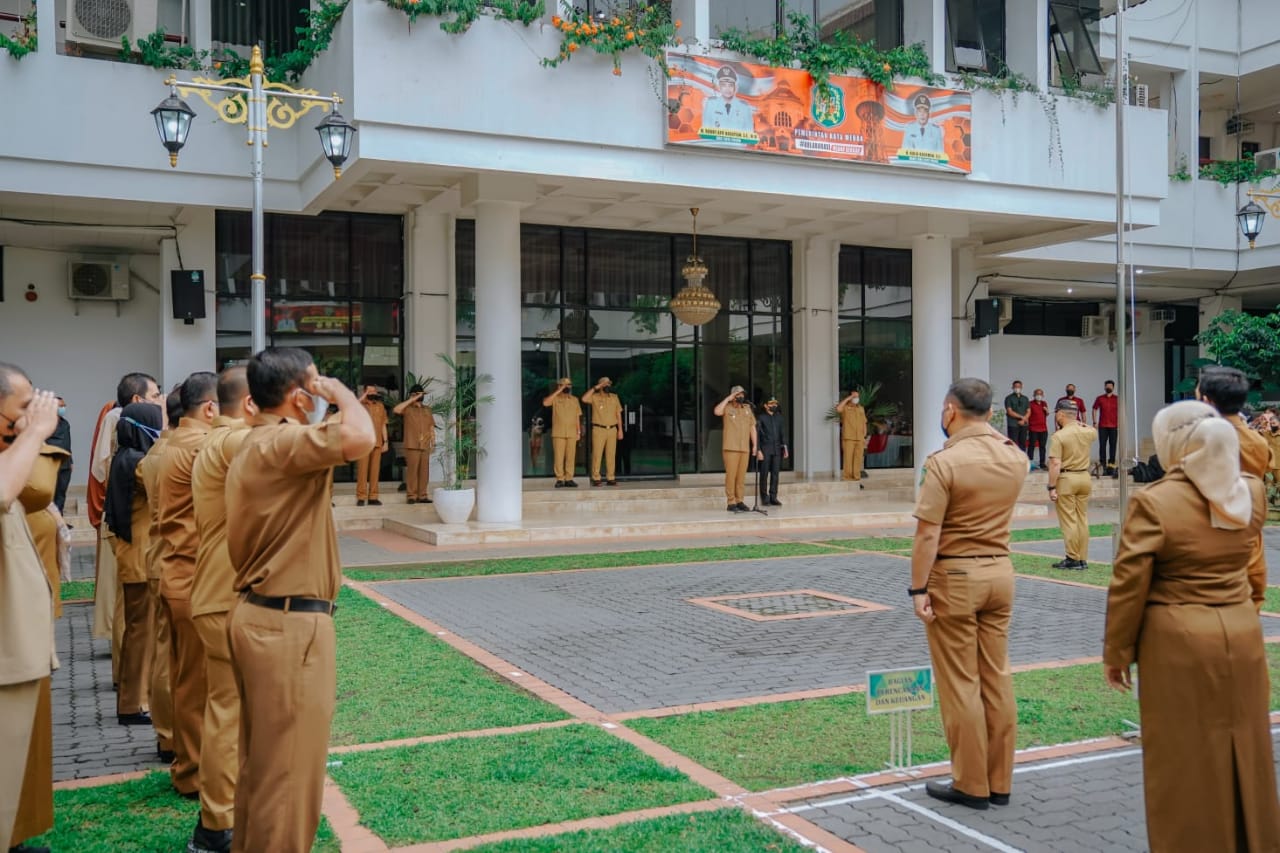 “Mulai dari hari ini, saya ingatkan kembali agar kita bersama-sama melaksanakan semua tugas seperti biasa dengan penuh rasa tanggung jawab. Apalagi kita telah memiliki target-target maupun visi misi yang harus dicapai dari waktu ke waktu,” kata Bobby Nasution saat memimpin apel di hari pertama kerja usai libur panjang Hari Raya Idul Fitri 1443 H di halaman tengah Balai Kota Medan, Senin (9/5).