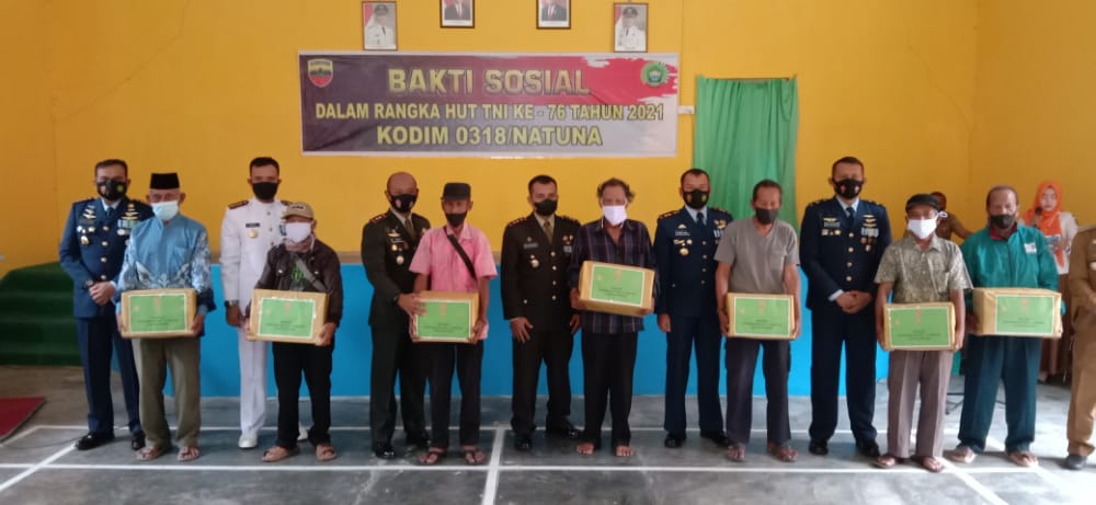 Dandim 0318/Natuna Letkol Asep Ridwan S.H., M.Han. mengatakan dalam memeriahkan HUT TNI ke-76 Tahun 2021, Kodim 0318/Natuna melaksanakan kegiatan yang bersentuhan langsung dengan masyarakat. Salah satunya adalah melaksanakan kegiatan bakti sosial berupa penyaluran bantuan paket sembako kepada para Veteran dan Masyarakat yang lebih membutuhkan Tujuannya adalah untuk membantu masyarakat yang terdampak covid-19, termasuk masyarakat yang kurang beruntung.