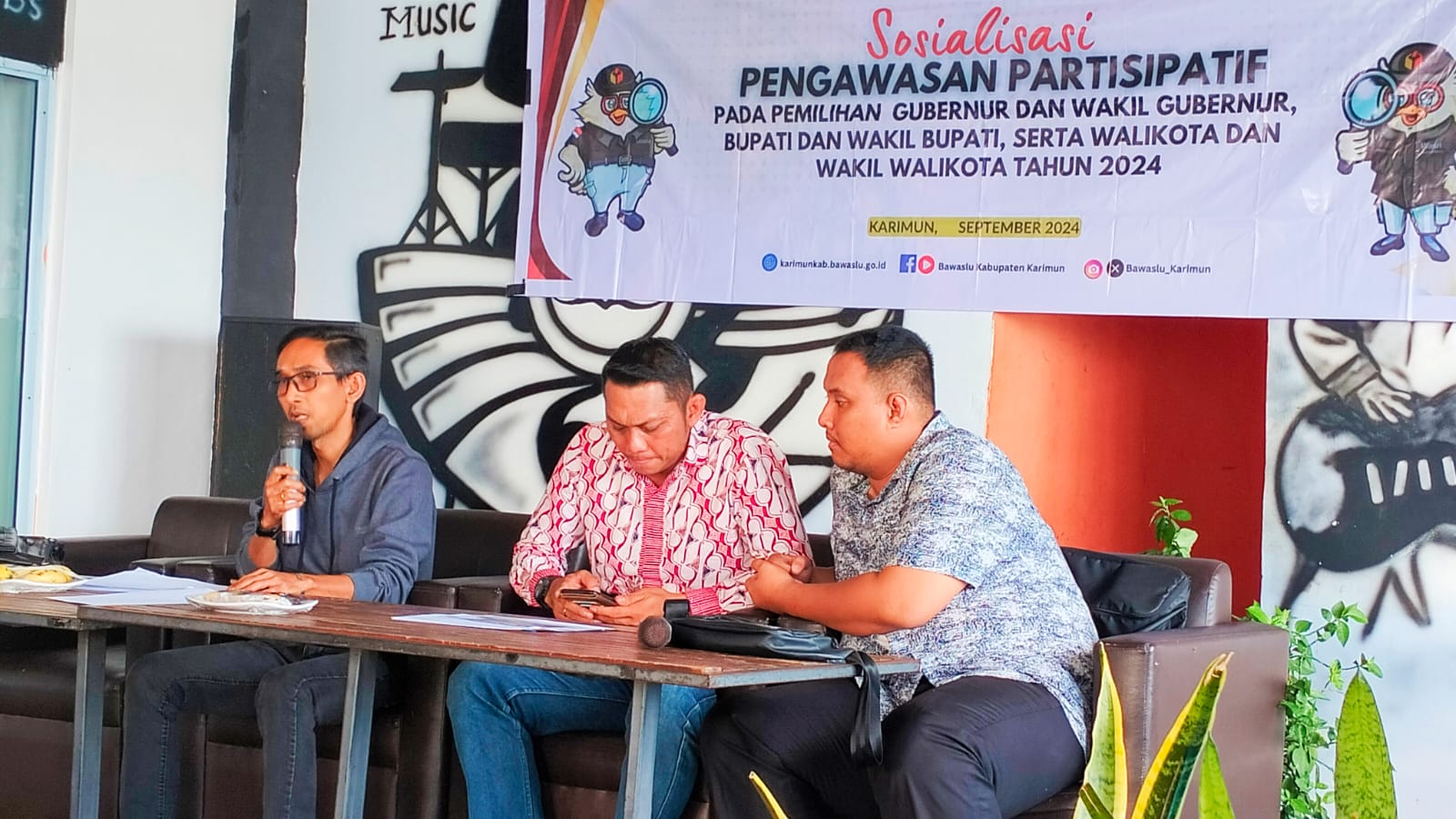 Karimun, Potretnusantara.id – Badan Pengawas Pemilihan Umum (Bawaslu) Kabupaten Karimun menggelar Sosialisasi Pengawasan Partisipatif pada Pemilihan Gubernur dan Wakil Gubernur, Bupati dan Wakil Bupati, serta Walikota dan Wakil Walikota Tahun 2024 di Coastal Resto Cafe, Tanjung Balai Karimun. Kamis, (26/9) sore.