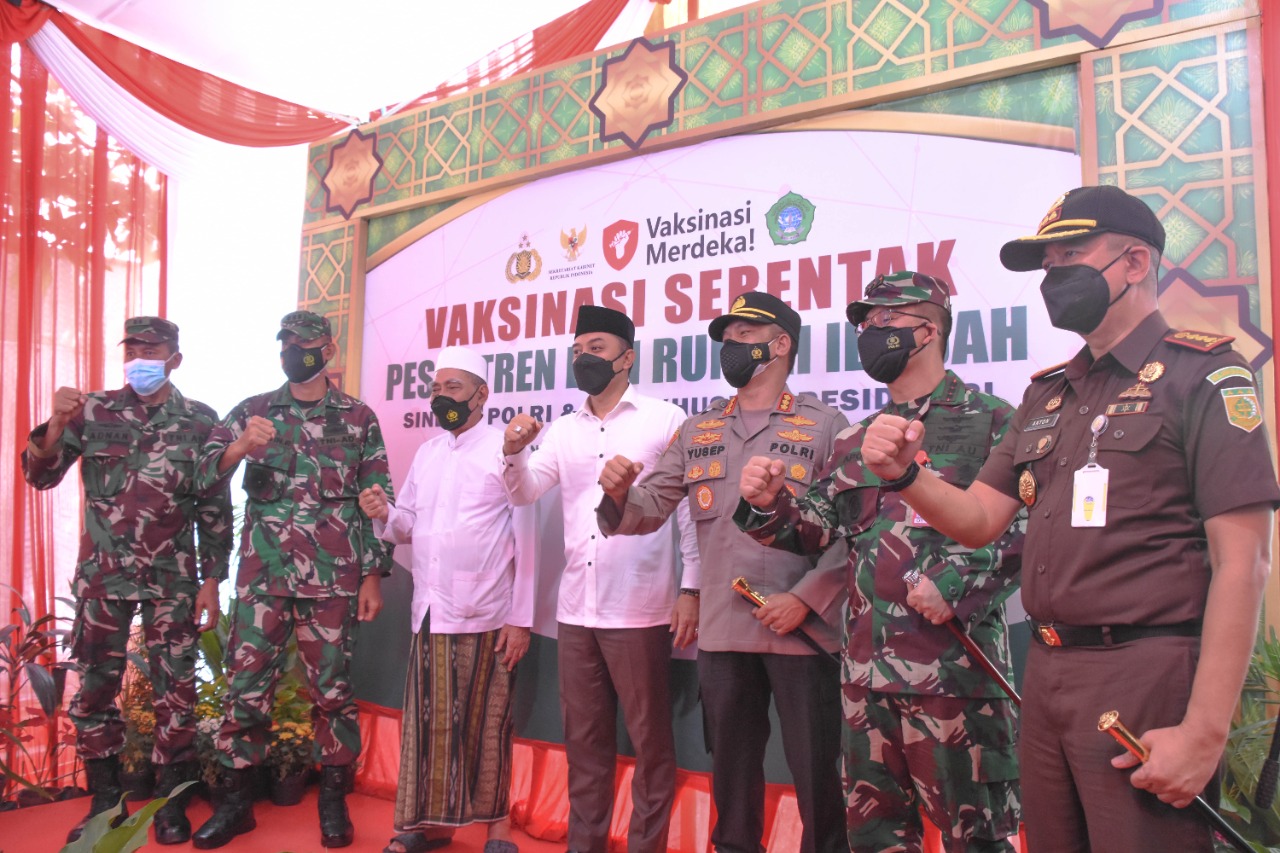 Vaksinasi kali ini, digelar secara serentak di kalangan Ponpes dan tempat ibadah. Kegiatan itu, merupakan sinergitas antara staf Kepresidenan dengan seluruh lapisan masyarakat, terutama di kalangan Ponpes yang ditujukan untuk memutus rantai penyebaran pandemi Covid-19.