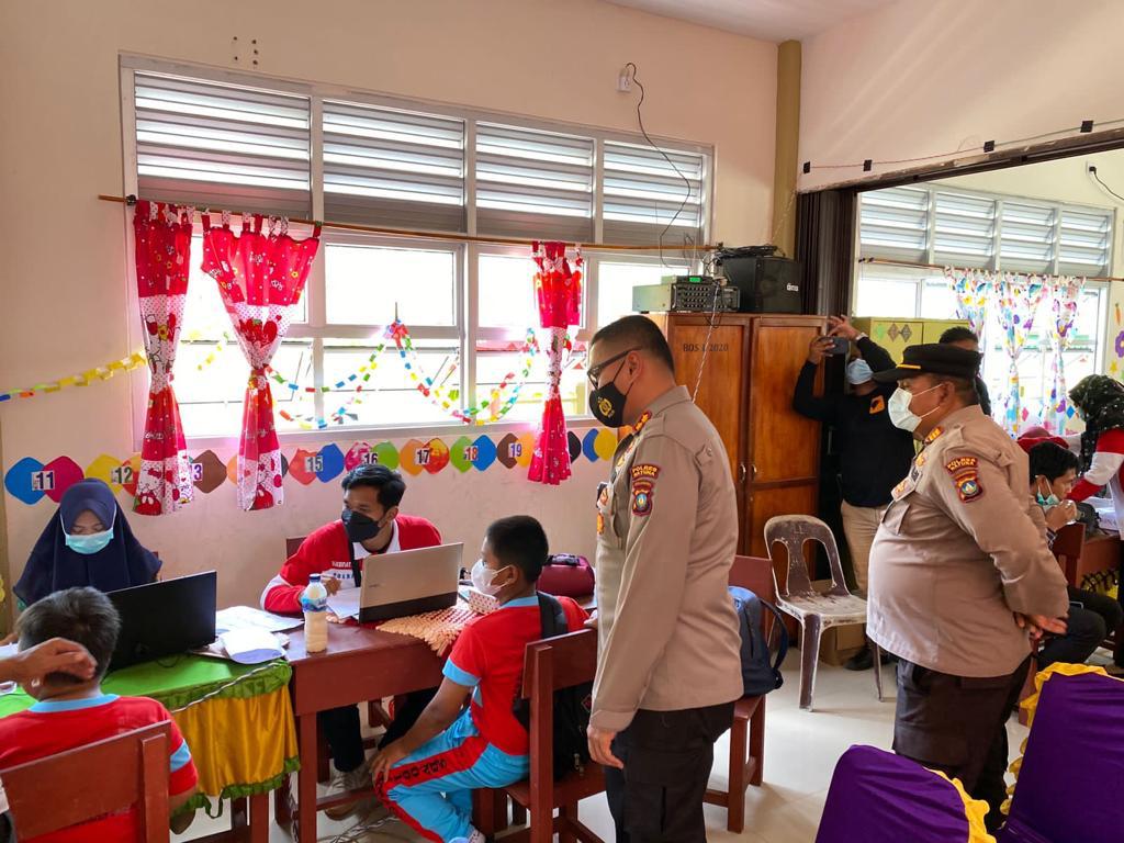 NATUNA, Potretnusantara.Id – Kapolres Natuna AKBP Iwan Ariyandhy, S.I.K., M.H bersama Kabag Ops Polres Natuna, Kasat Pol Airud Polres Natuna,Tenaga Kesehatan dan Tim Vaksinator Polres Natuna laksanakan Vaksinasi Merdeka untuk anak usia 6-11 tahun di SDN 003 Kecamatan Bunguran Barat, Sabtu (19/02/2022).