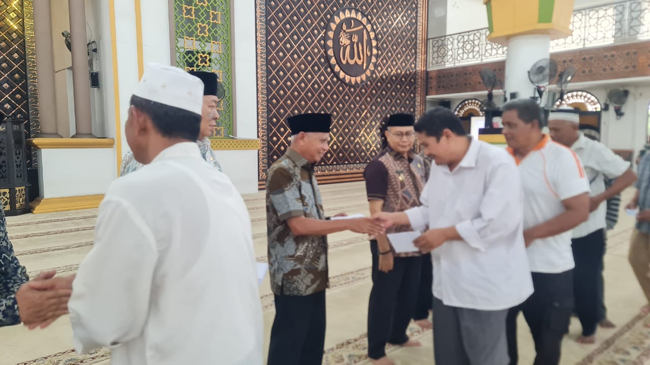 Pada kegiatan ini juga Keluarga H. Rahmat Hidayat Siregar Kepala Dinas Lingkungan Hidup Kabupaten Asahan memberikan bantuan kepada para Santri Tahfiz Qur’an Masjid Agung H. Achmad Bakrie Kisaran berupa pakaian. Terlihat Asisten Administrasi Umum, Ketua BKM Agung H. Achmad Bakre Kisaran, Kabag Kesra Setdakab Asahan, Sekretaris Dinas Kominfo Kabupaten Asahan dan tamu undangan lainnya. (Paimin).