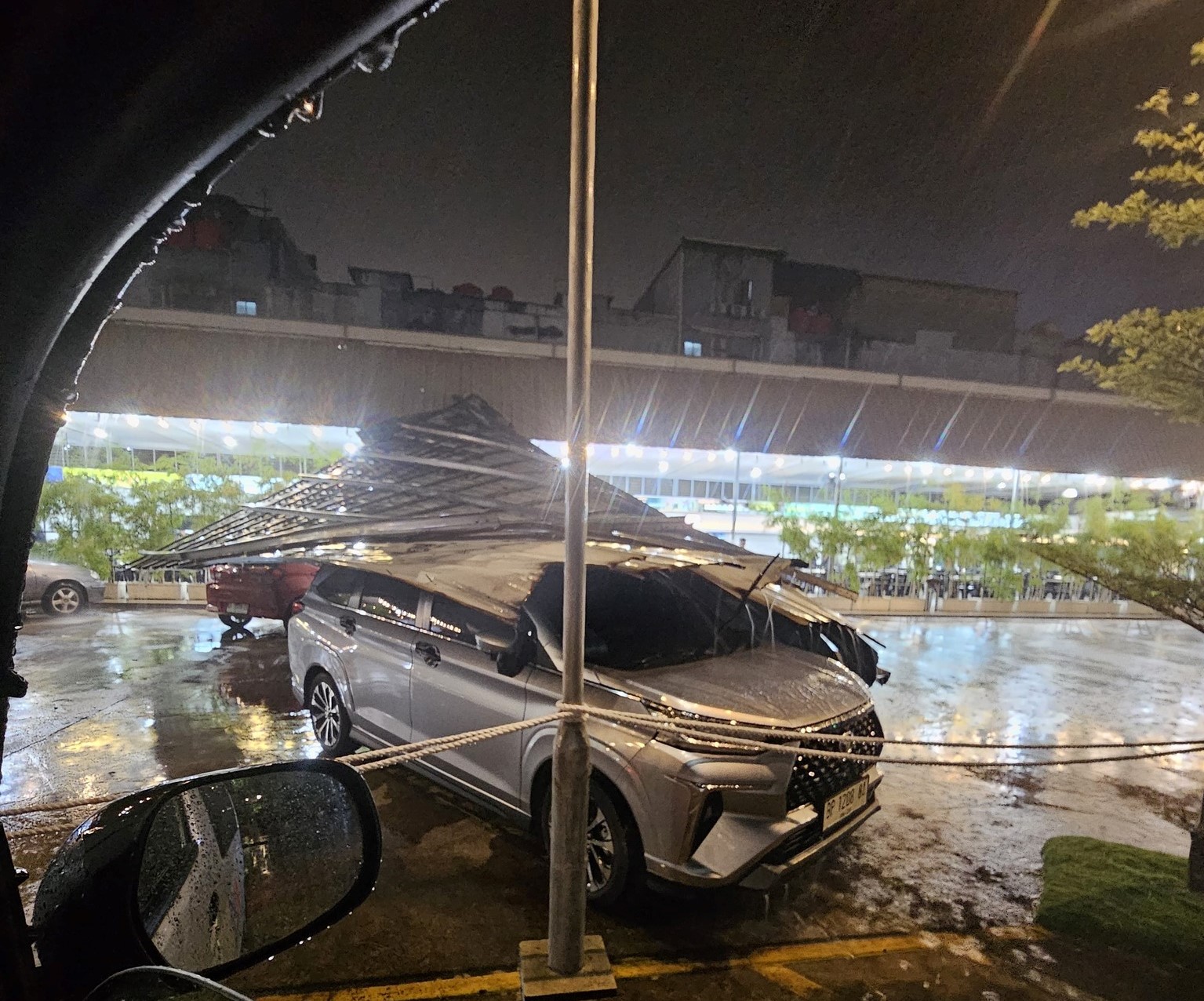 Pantauan dilapangan saat ini, akibat intensitas hujan yang turun deras dan disertai angin kenjang beberpa bangunan dan pohon di wilayah Batam khususnya dan Karimun mengalami kerusakan.