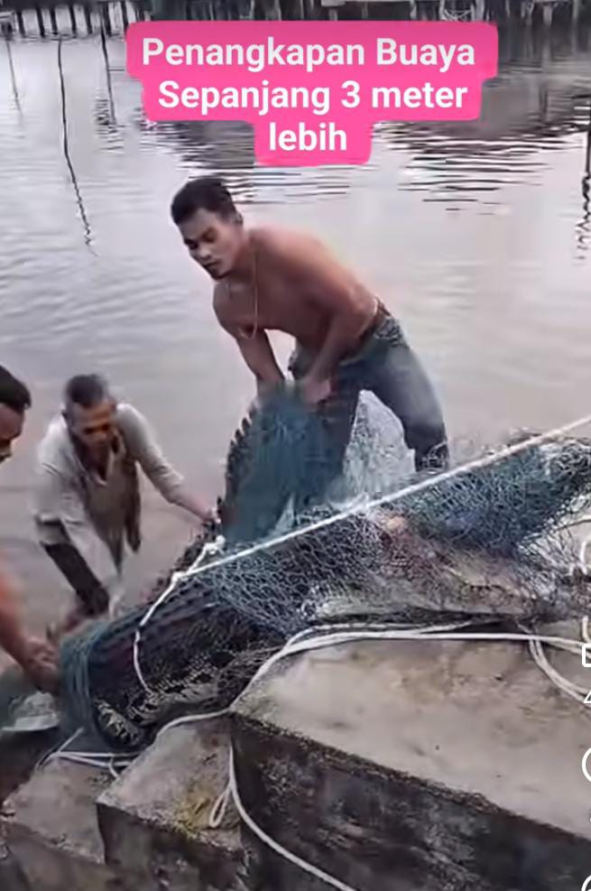 Akan hal itu, Warga menangkap buaya tersebut dengan melemparkan tali jaring untuk menjerat sehingga bagian mulut buaya terlilit tali jaring tersebut.