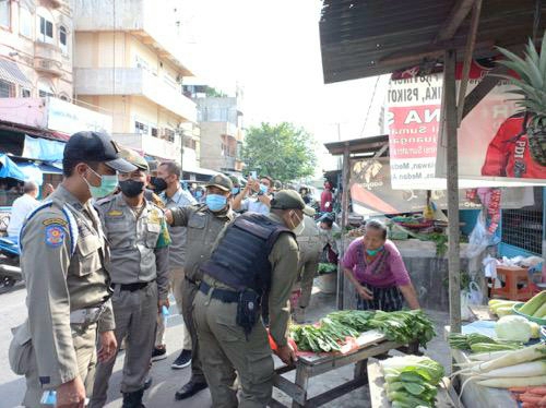Setelah itu, tim gabungan dibagi menjadi 5 dan  bergerak menuju lokasi yang telah ditentukan. Tim pertama melakukan sosialisasi dan edukasi kepada para pedagang kaki lima (PKL) yang berjualan di badan jalan dan trotoar sekaligus pembagian masker di Pasar Bersama Jalan Bersama, Pasar Mandala By Pass 1 Jalan Mandala By Pass, Pasar Perguruan Jalan Pukat 8 dan Pasar Kompleks TV Jalan Baru.