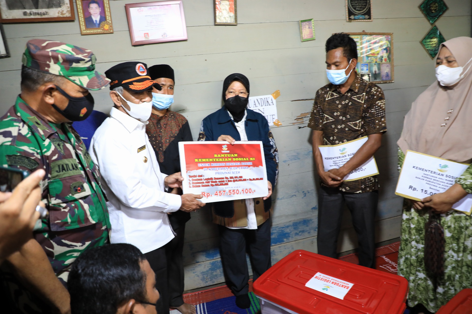ACEH, Potretnusantara.id - Bupati Aceh Utara H Muhammad Thaib mendampingi Menteri Sosial Tri Rismaharini mengunjungi rumah duka korban meninggal dunia akibat bencana banjir di Kabupaten Aceh Utara, Selasa, 11 Januari 2022.
