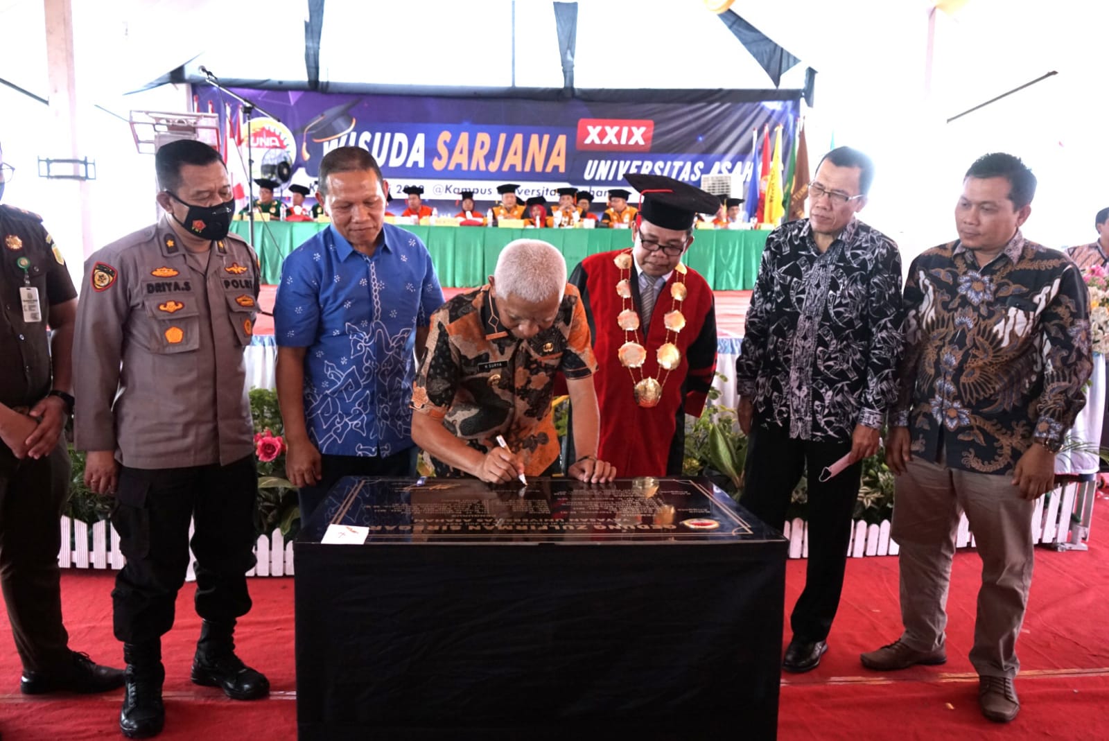 Diakhir kegiatan Bupati Asahan menandatagani batu prasasti dan memotong pita meresmikan Gedung Zulfirman Siregar yang berada di area UNA.