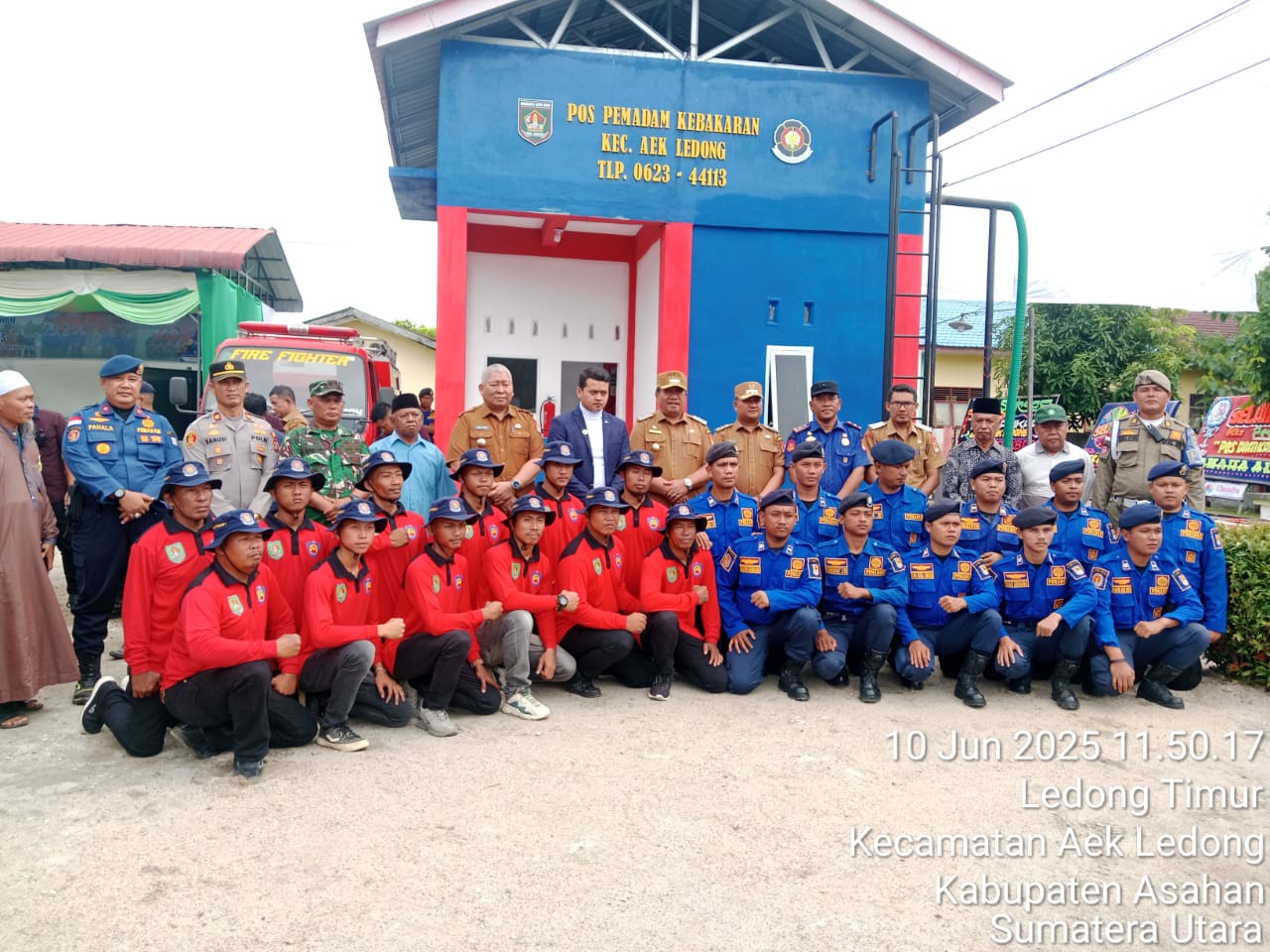 “Pos Damkar Kecamatan Aek Ledong ini juga kami lengkapi sarana dan prasarana kebutuhan, yaitu : 1 unit mobil Damkar dengan kapasitas 4.000 liter, Personil sebanyak 20 orang, 6 orang personil kesatuan PP, 14 orang relawan Pemadam kebakaran, APD dan lainnya”, ungkap Muhamad Azmi.