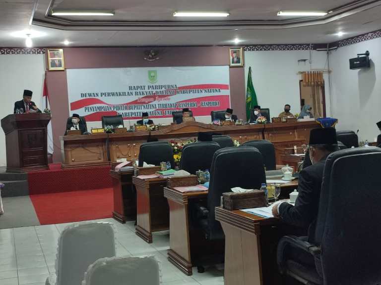 NATUNA, Potretnusantara.id – Dewan Perwakilan Rakyat Daerah (DPRD) Natuna menggelar rapat paripurna dengan agenda Penyampaian pidato Bupati Natuna terhadap Ranperda Natuna Tahun 2021.