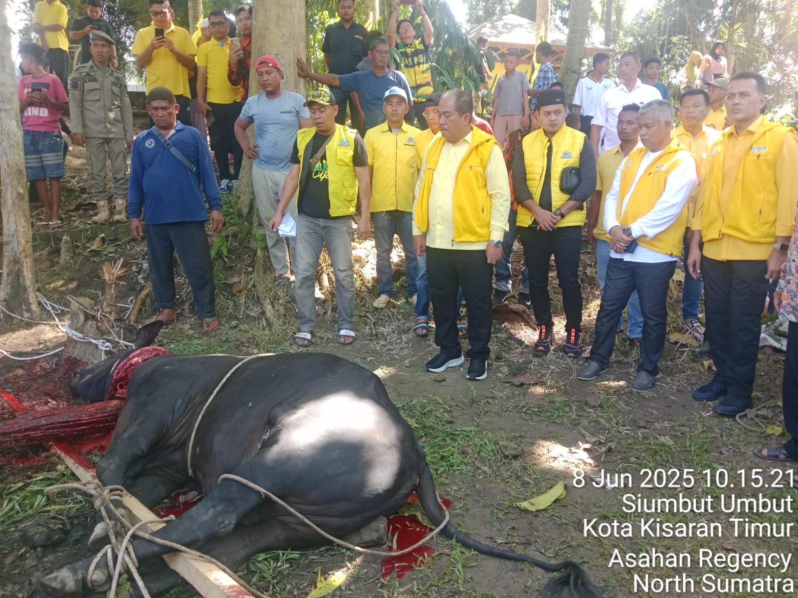 “Kegiatan ini dalam rangka silaturahmi sekaligus pelaksanaan kegiatan qurban Hari Raya Idhul Adha 1446 Hijriah 2025. Hewan qurban yang diserahkan oleh DPP Partai Golkar Sumut dan DPD Partai Golkar Asahan sebanyak 14 ekor sapi dan 2 ekor kambing. Mudah-mudahan ini dapat bermanfaat bagi masyarakat Asahan dan bisa lebih meningkatkan tali silaturahmi dengan pengurus Partai Golkar se-Sumatera Utara”. ujar Taufik. (Paimin)