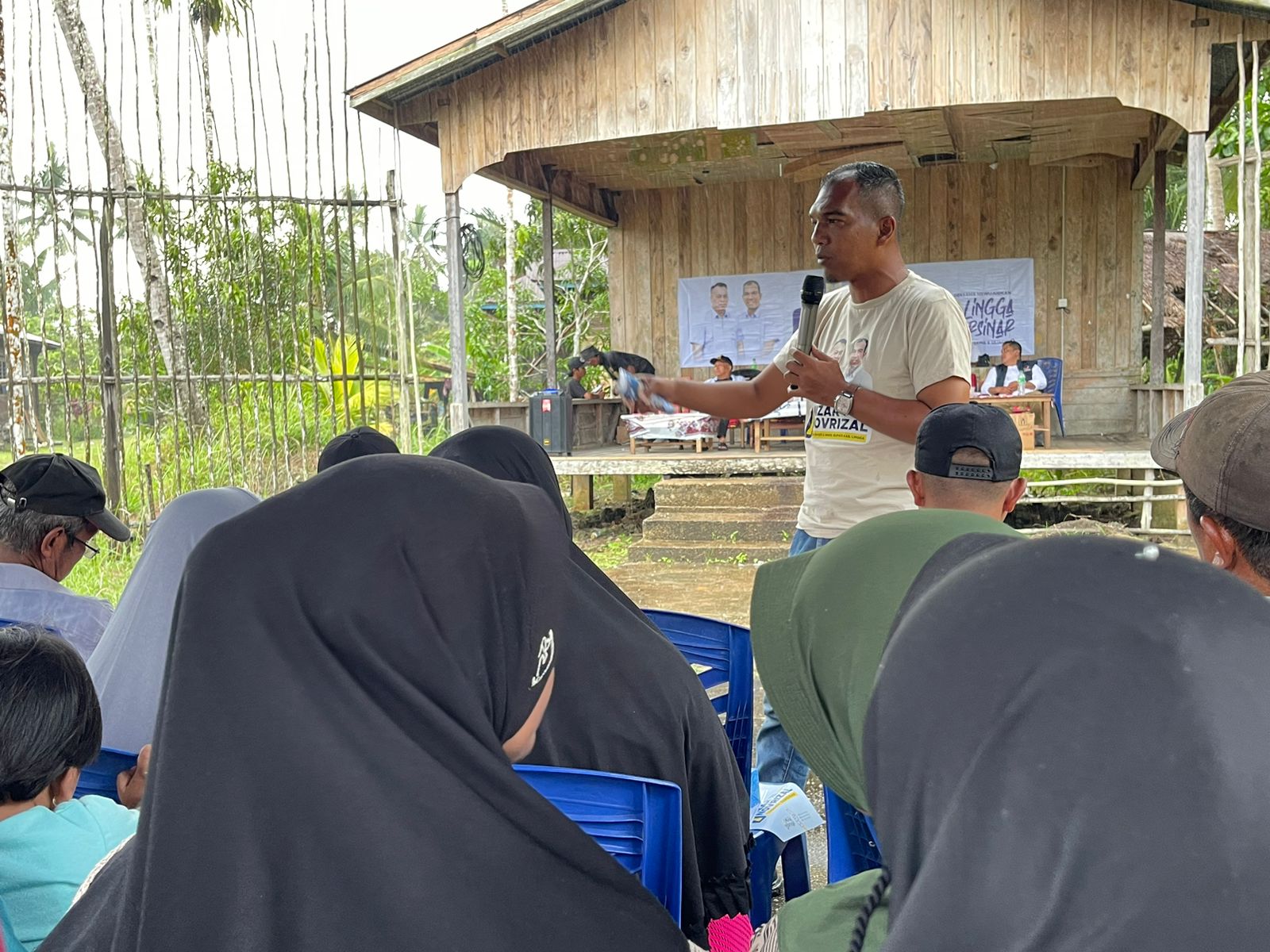 Cawabup nomor urut 1 Novrizal saat kampanye bersama masyarakat dusun Semincot Desa Sungai Besar. Sabtu (19/10/24). Foto : Potretnusantara.id