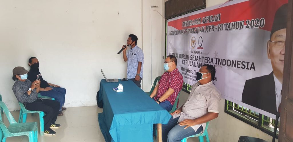 BATAM, Potretnusantara.id-Haripinto Tanuwidjaja selaku Anggota DPD RI/MPR RI dari Kepulauan Riau dalam kegiatan acara penyerapan aspurasi MPR RI bersama Komisariat Serikat Buruh Sejahtera Indonesia (KSBSI) FSB KIKES Wilayah Sagulung Batu Aji, Senin (30/6) menjelaskan, dalam era pandemik Covid 19 pekerja terdampak dapat melakukan alih kompetensi atau reskilling kepada bidang pekerjaan lainnya yang masih berjalan secara normal atau malah meningkat ditengah tengah pandemic Covid 19 saat ini.
