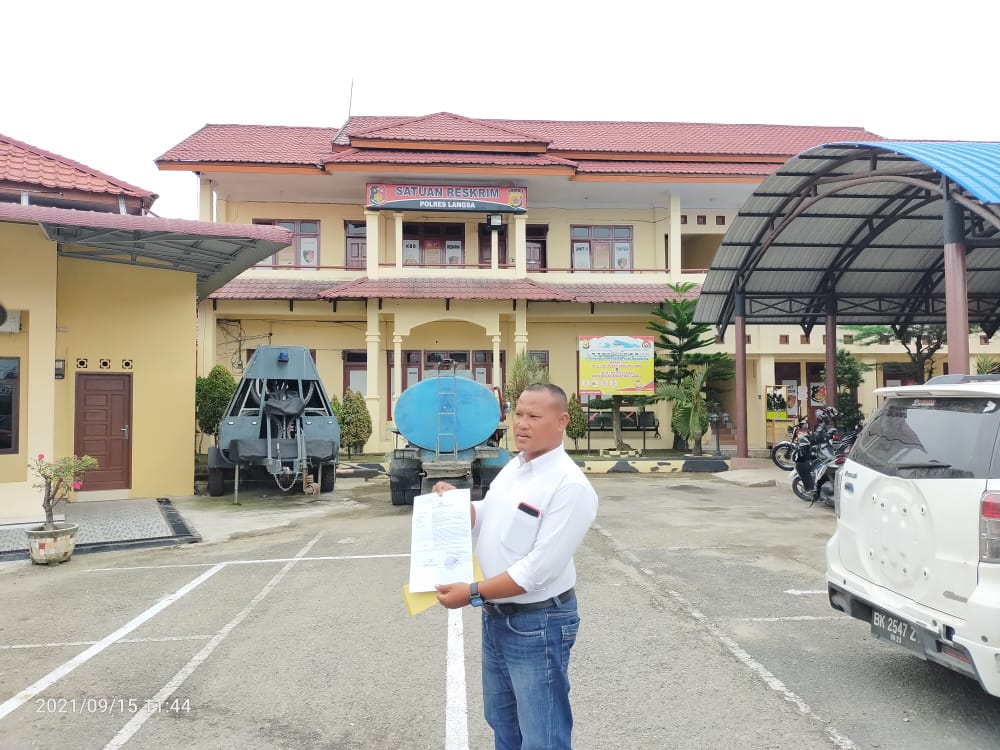 LANGSA, Potretnusantara.id – Salah seorang Wartawan di Kota Langsa, Irmansyah atau yang akrab disapa Danton, resmi Rabu (15/9/2021), melaporkan oknum Walikota Langsa, UA, dan RF, ST PPK di kantor Dispora Pemko Langsa ke Polres Langsa dalam perkara penghinaan dan pencemaran nama baik, serta UU ITE. Laporan tersebut sesuai dengan Surat Keterangan Tanda Bukti Lapor Nomor: SKTBL/56/VIII/2021/Reskrim, tanggal 15 September 2021.