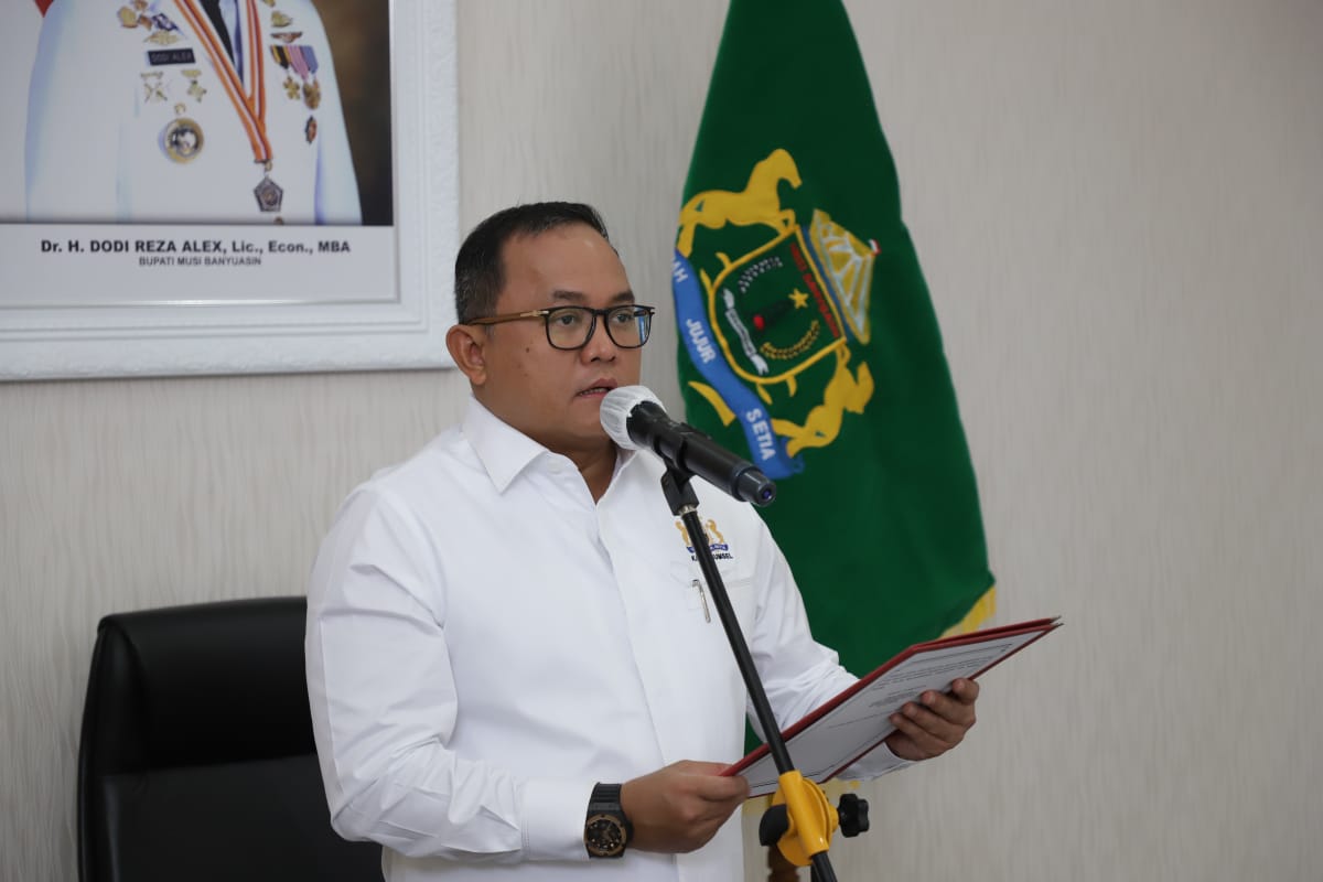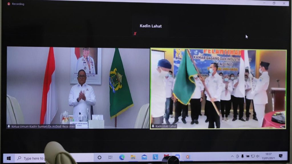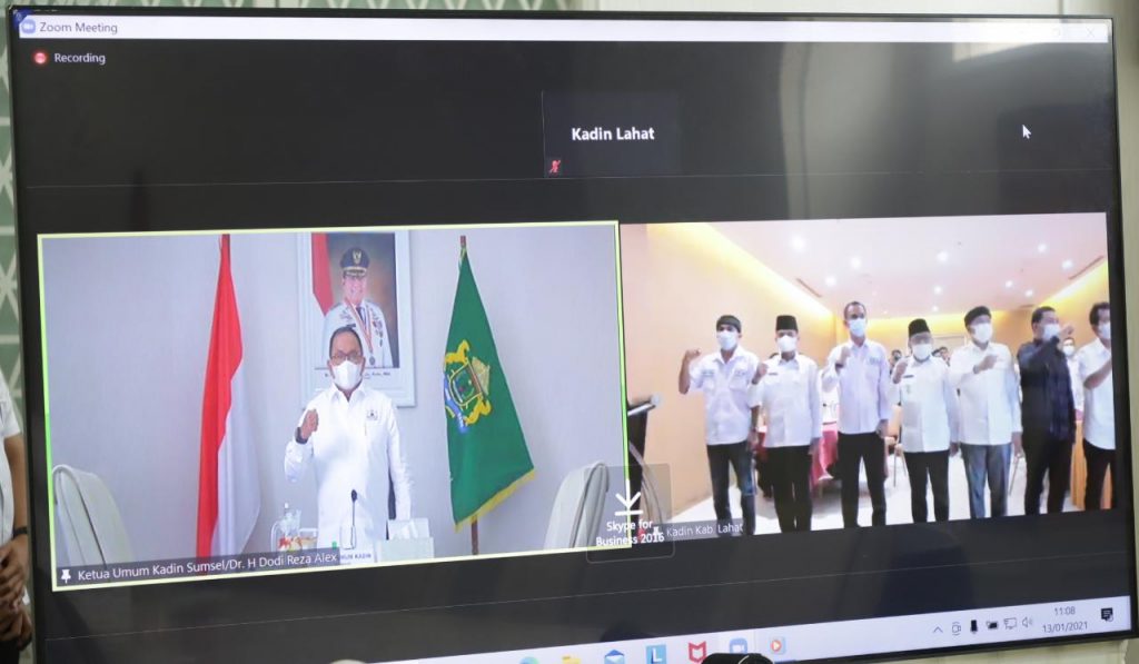 SEKAYU, Potretnusantara,id-Bupati Musi Banyuasin Dr H Dodi Reza Alex selaku Ketua Umum Kamar Dagang dan Industri Indonesia (Kadin) Provinsi Sumatera Selatan melantik pengurus Kadin Kabupaten Lahat Periode 2021-2026 secara virtual, di Ruang Rapat Guest Griya Bumi Serasan Sekate, Rabu (13/1).