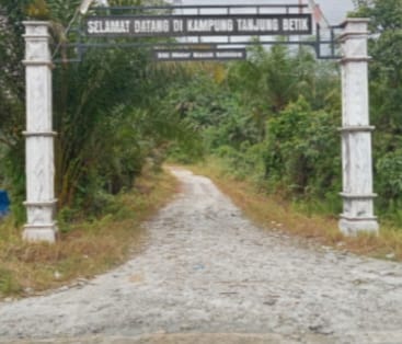 Terlihat akses masuk jalan utama ke Desa Tanjung Betik belum tersentuh pembangunan. (foto.potretnusantara.id)
