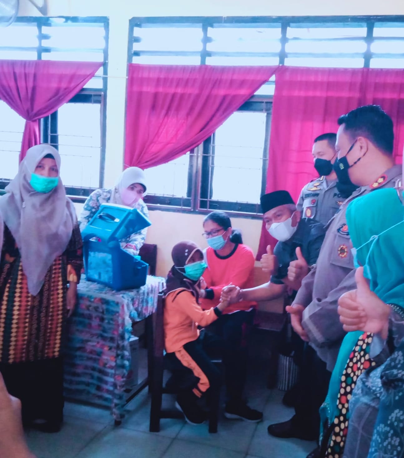 Kunjungan Plt Bupati menyapa peserta didik yang di vaksin serta menjelaskan tujuan vaksinasi adalah agar seluruh peserta didik terhindar dari penyakit Covid-19.