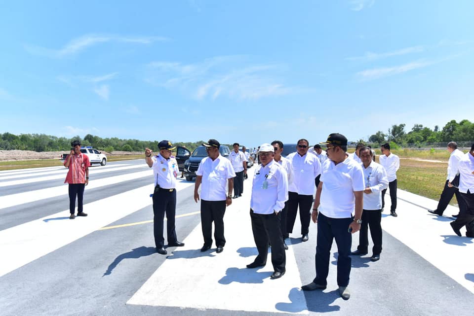 Ketua DPRD Karimun, HM Yusuf Sirat saat meninjau Bandara RHA bersama Bupati Karimun