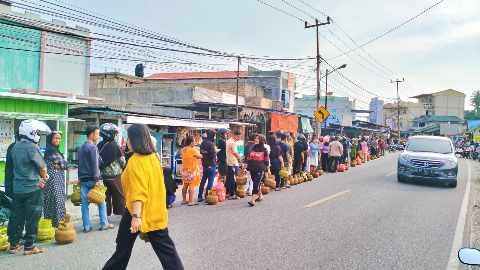 Berdasarkan pantauan awak media ini dilapangan, warga rela berdesakan dan antri berjam-jam disebuah pangkalan gas untuk mendapatkan satu tabung gas elpiji 3 kg.