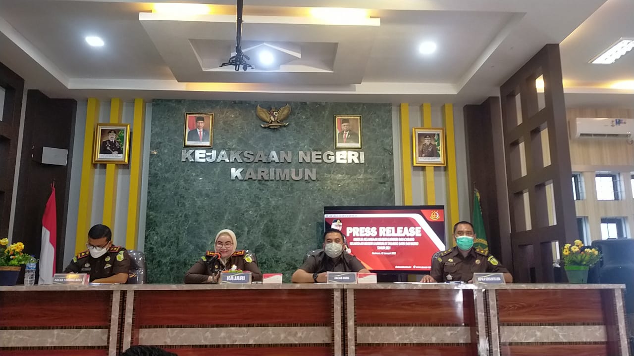 KARIMUN, Potretnusantara.id- Dihadapan sejumlah awak media di Aula Kejaksaan Negeri (Kejari) Kabupaten Karimun, Rabu (11/01) Kepala Kejari Karimun Meilinda, menyampaikan pencapaian kinerja selama Tahun 2021 Kinerja kejaksaan negeri Karimun, cabang kejaksaan negeri Tanjungbatu dan Moro.