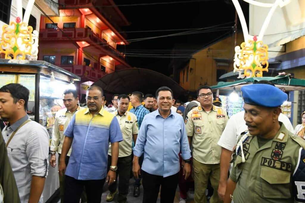 Gubernur Kepri Ansar Ahmad mengucapkan selamat kepada pedagang pasar malam Karimun yang kini menempati tempat yang telah di Revitalisasi oleh pemerintah daerah kabupaten Karimun.