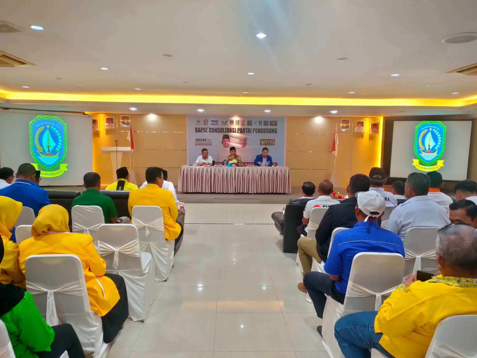 Natuna, Potretnusantara.id – Calon Gubernur petahana, Ansar Ahmad menghadiri rapat konsolidasi partai pengusul Sahabat Ansar Ahmad – Nyanyang Harris Pratamura (SAYANG) Kabupaten Natuna, di Aula Hotel Natuna, Jumat 13 September 2024.