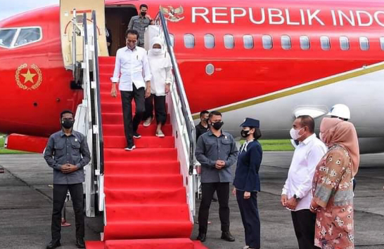 Agenda Presiden Republik Indonesia Joko Widodo (Jokowi) bersama Ibu Negara Iriana Joko Widodo tiba di Pangkalan Udara Soewondo, Medan, Selasa (5/7/2022).