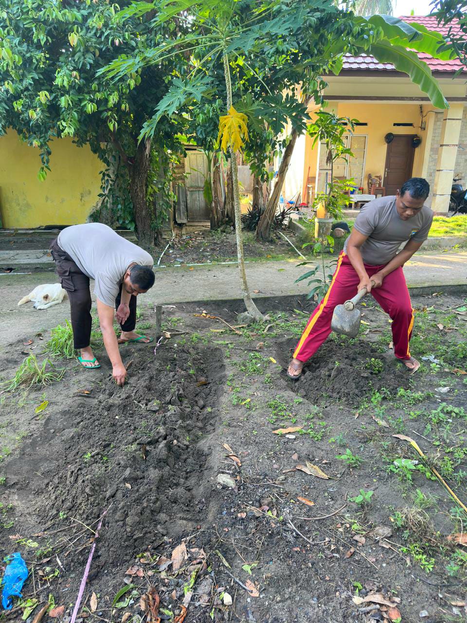 LINGGA, Potretnusantara.id-Iptu Hendri Kapolsek Senayang bersama Personel Polsek Senayang melaksanakan kegiatan Pembersihan Lahan dan Penanaman Bibit Jagung di Lahan 100 m² yang berada di Halaman Kantor Polsek Senayang dengan manfaatkan Lahan pada Halaman Polsek Senayang Dalam Rangka Mendukung Program Asta Cita Presiden RI dengan Tema Gerakan Nasional Pangan Merah Putih menuju Swasembada Pangan Berkelanjutan. Kamis,(14-11-2024)