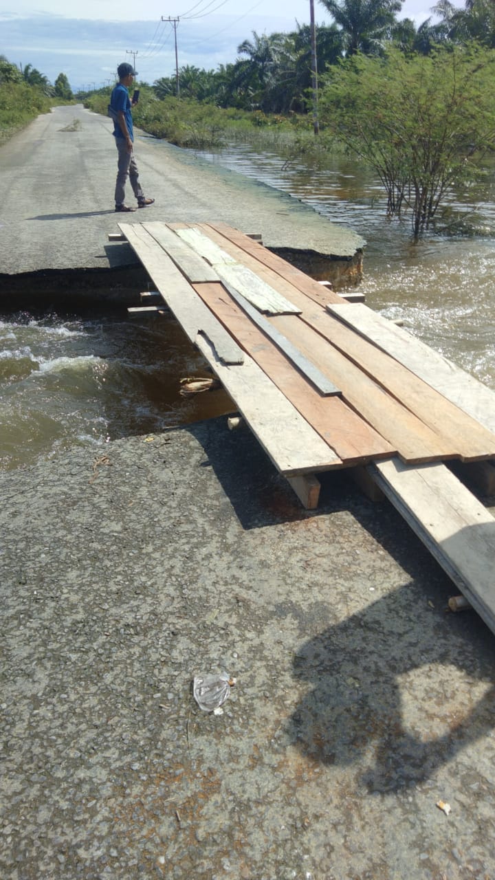“Dua hari lalu jalan ini masih bisa dilewati, meskipun berlubang. Namun sekarang, kondisinya semakin parah hingga benar-benar terputus. Kami sangat berterima kasih kepada warga yang telah membuat jembatan darurat ini. Meski begitu, kami berharap pemerintah segera memperbaiki jalan ini,” ujarnya.