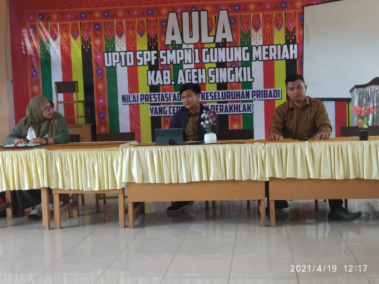 Rapat di laksanakan Senin, 19 April 2021 di aula SMPN 1 Gunung meriah, rapat di hadiri para ketua seksi masing-masing dari panitia penyelenggara.
