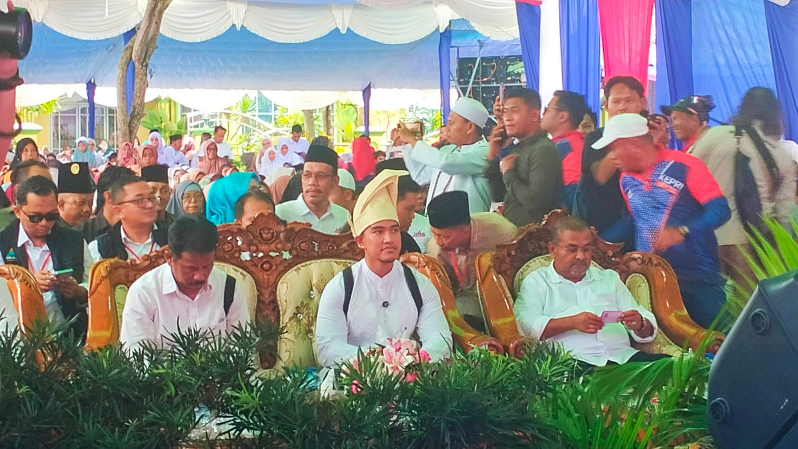 Kedatangan putra bungsu Presiden RI Joko Widodo itu guna mengkampanyekan pasangan calon Gubernur dan Wakil Gubernur Kepri nomor urut 2, Haji Muhammad Rudi dan Aunur Rafiq.
