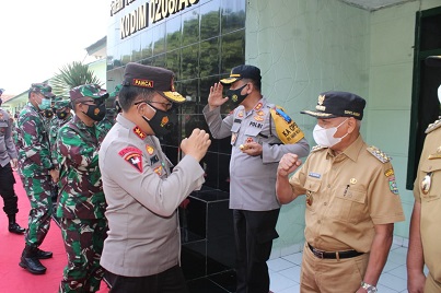 ASAHAN, Potretnusantara.id- Kapolres Asahan AKBP Nugroho Dwi Karyanto, S.I.K. didampingi Bupati Asahan, H. Surya Bsc dan Wakil Bupati Asahan, Taufik ZA dan unsur Forkopimda Kabupaten Asahan menyambut kunjungan Kapolda Sumatera Utara Irjen Pol Drs. R. Z. Panca Putra Simanjuntak, M. Si. bersama Pangdam I Bukit Barisan Mayjen TNI, Hasannudin, S. IP. M.M, di Mako Kodim 0208/AS Kisaran, Senin (19/4/2021)