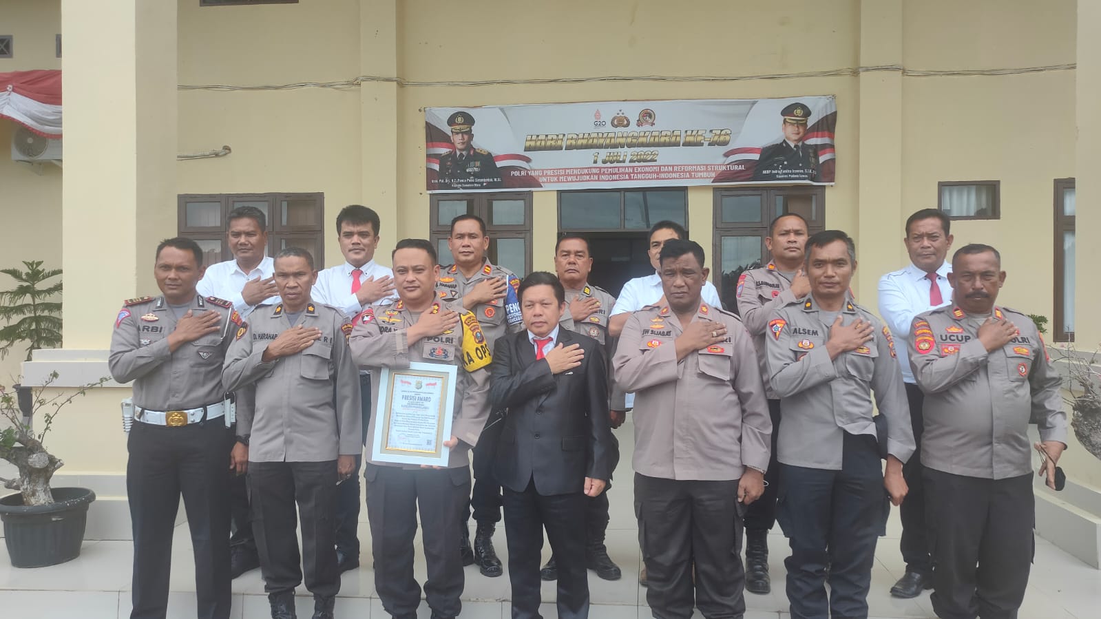 Penganugrahan Presisi Award dengan nomor 132/VII/LEMKAPI/2022 kepada Kapolres Padang Lawas disampaikan langsung oleh Direktur Eksekutif LEMKAPI DR. Edi Saputra Hasibuan, S.H., M.H., sekira pukul 14.00 wib di Aula Bhayangkara kantor Polres Jalan Lintas Riau, Siborna Bunut, Kecamatan Sosa Julu, Kabupaten Padang Lawas, Sumatera Utara.