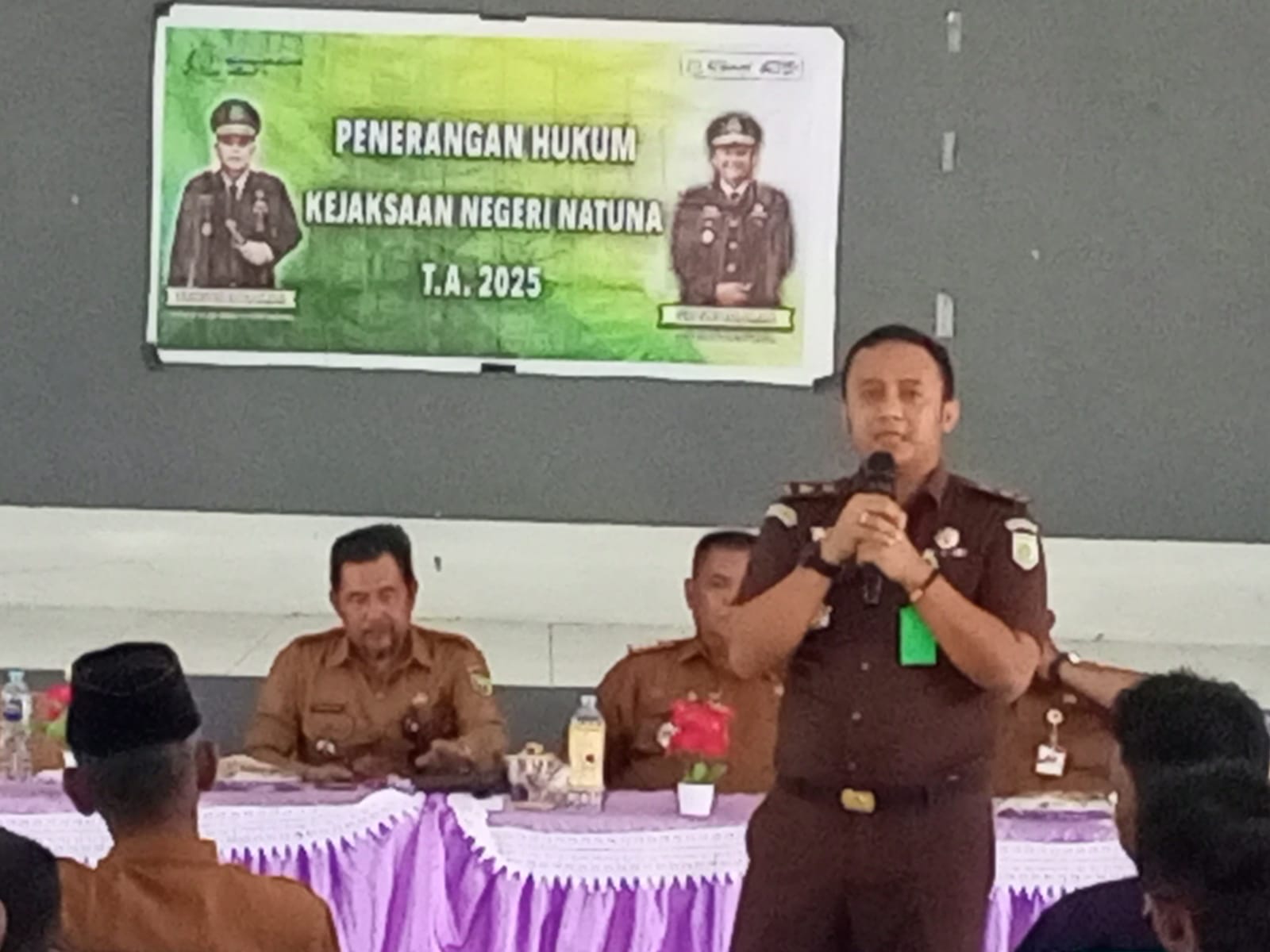 Kegiatan dibuka oleh Kasi Intelijen Kejari Natuna, Tulus Yunus Abdi, S.H., M.H., yang mewakili Kajari Natuna, Surayadi Sembiring, S.H., M.H. Ia menyampaikan materi bertema “Peran Kejaksaan dalam Pengelolaan Keuangan Dana Desa Berbasis Informasi dan Teknologi.”