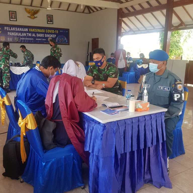 “Hari ini Lanal Dabo Singkep melaksanakan vaksinasi tahap pertama dengan sasaran 60 orang yang meliputi militer, PNS dan PHL yang ada di Lanal Dabo Singkep,” kata Letda Laut (K) dr. Tamam Mubarak disela-sela kegiatan vaksinasi