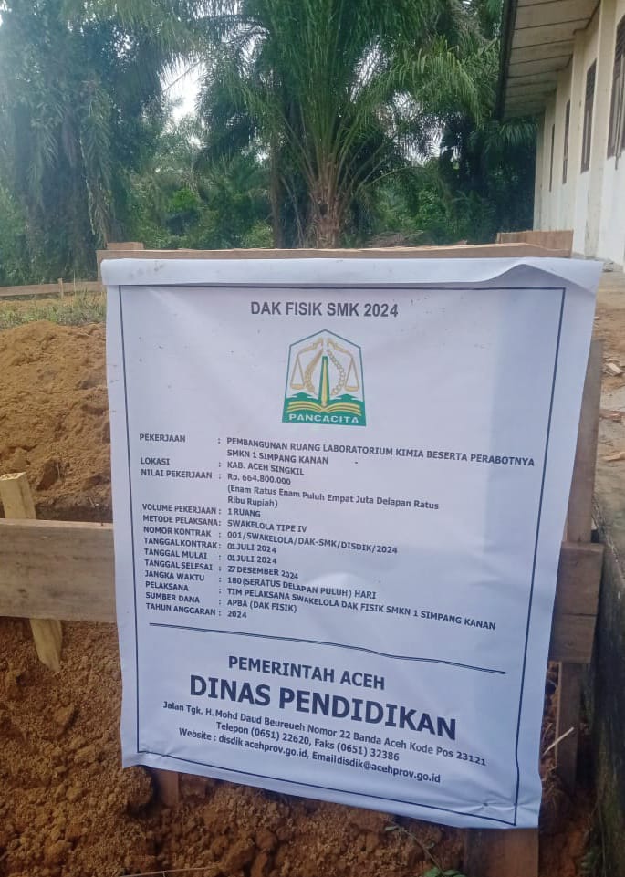 “Sekaligus laporan kepada DPP Cokro Prawiro Nusantaro agar mendapat perhatian dan tindaklanjut. Sebagai mana diketahui, ke 4 item proyek DAK fisik 2024 di SMKN 1 Simpang kanan, Aceh Singkil itu meliputi, pekerjaan pembangunan laboratorium bahasa beserta perabotannya dengan nilai, Rp. 448.740.000, pembangunan laboratorium kimia beserta perabotannya senilai Rp. 664.740.000, pembangunan ruang bimbingan konseling (BK) beserta perabotannya senilai Rp. 226.460.000, dan pembangunan ruang UKS beserta perabotannya senilai Rp. 226.460.000,” sebut Dalian Bancin.