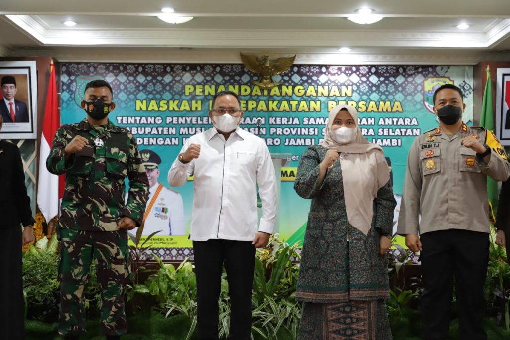Penandatanganan Nota Kesepahaman bersejarah yang pertama kali didaerah perbatasan Provinsi Sumatera Selatan dan Jambi dengan melakukan kerjasama yang ditandatangani oleh Bupati Muba Dr H Dodi Reza Alex dan Bupati Muaro Jambi Hj Masna Busro SE, di Auditorium Pemkab Muba, Rabu (16/12).