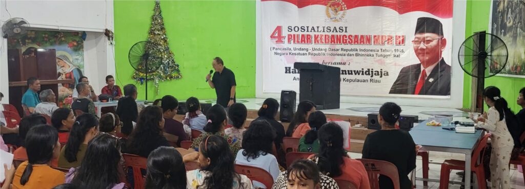 BATAM, Potretnusantara.id-Silaturahmi dalam lingkungan warga dalam membangun silaturahmi untuk menciptakan kerukunan antar warga dilingkungan pemukiman adalah salah satu bentuk cinta air. Hal ini disampaikan Anggota MPR RI, Haripinto Tanuwidjaja dalam rangka Sosialisasi Empat Pilar Kebangsaan di Gedung Serba Guna STM Dos Roha Bengkong Asrama, Blok B4, No 1, RT 02 RW 10, Kelurahan Tanjung, Kecamatan Bengkong, Kota Batam bersama kurang lebih 150 peserta dari Organisasi Serikat Tolong Menolong ( STM) Dos Roha Bengkong Asrama RW 10, Sabtu (15/06).