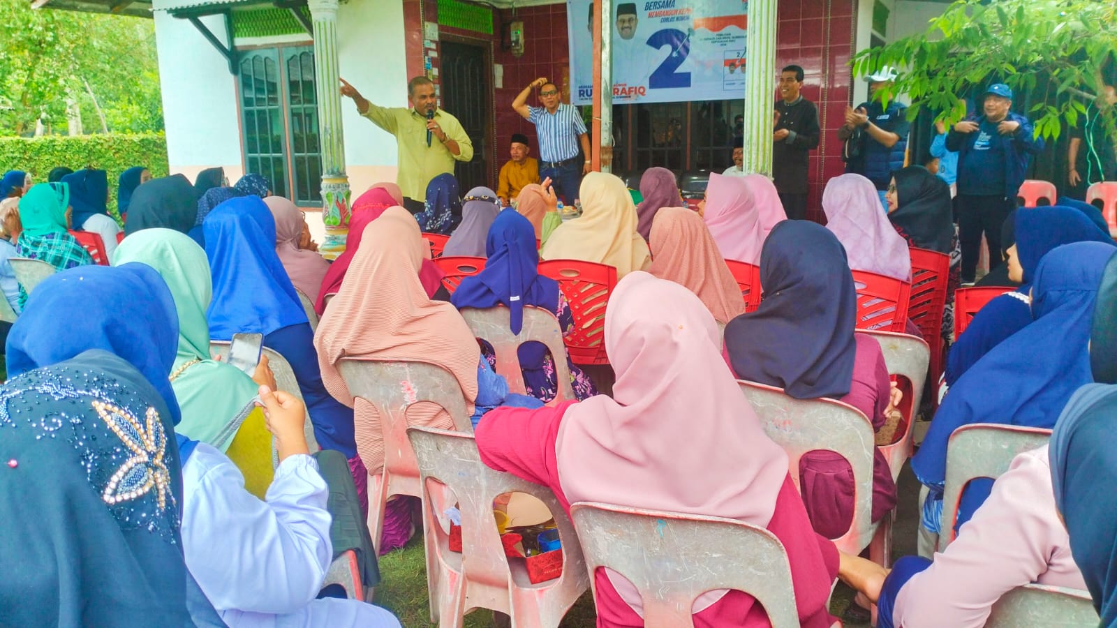 Meski diguyur hujan, namun tidak menyurutkan antusias masyarakat untuk mendengarkan pemaparan visi dan misi yang disampaikan oleh Aunur Rafiq.
