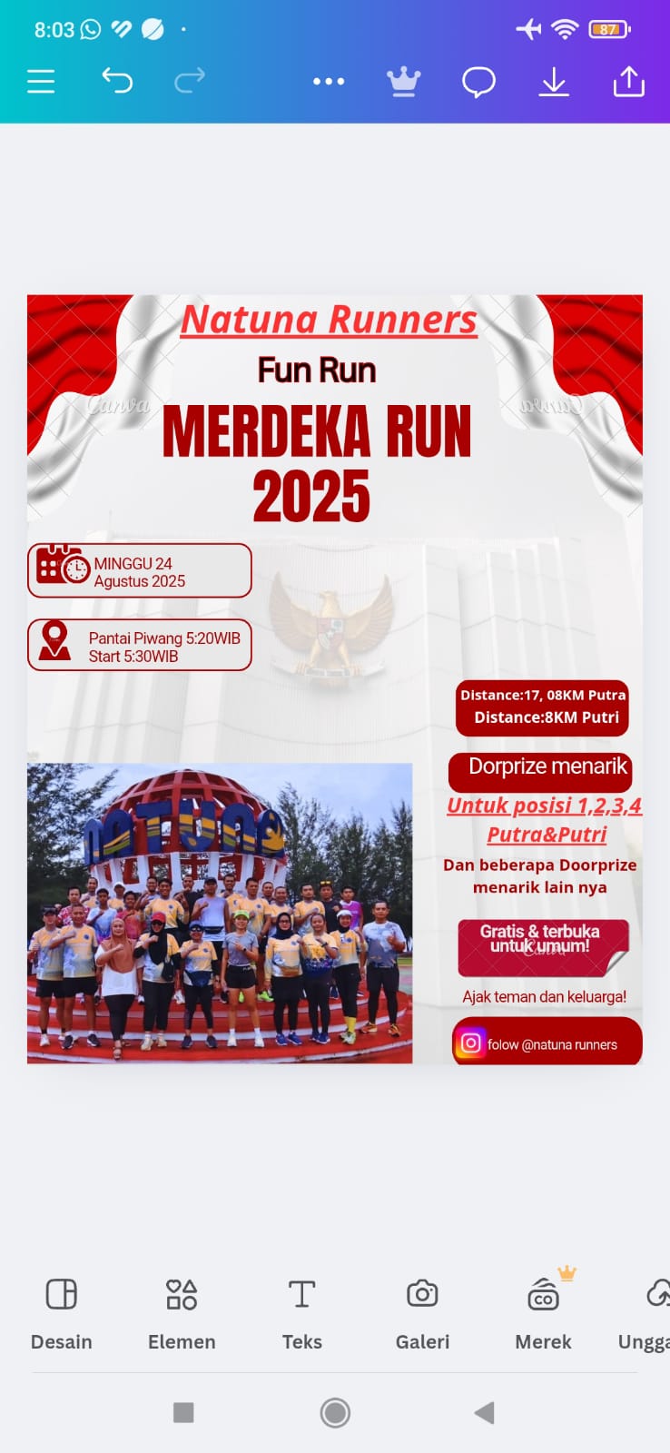 “Kami ingin Merdeka Run menjadi agenda tahunan yang mendongkrak pariwisata Natuna, sekaligus memperkuat semangat kebersamaan masyarakat,” tambah Erimudin.