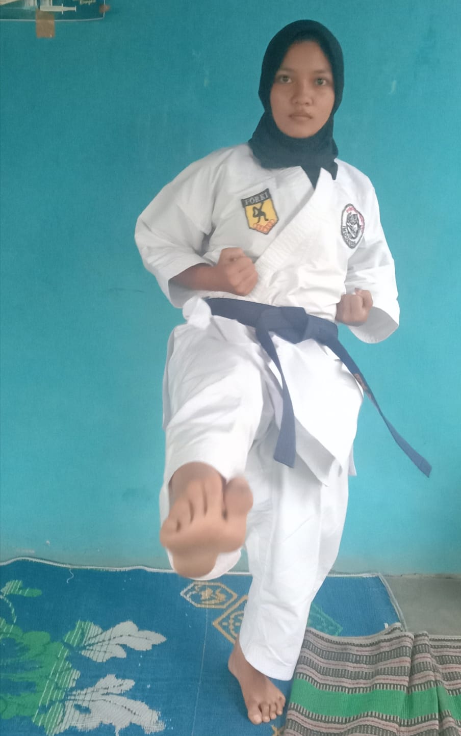 “ Takut sama begal, saya belajar karate untuk jaga diri “ungkap cewek kelahiran Teluk Dalam, 19 Nopember 2005, anak ke dua dari dua bersaudara pasangan Miswanto dengan Noni Marlina (almarhumah) saat ditemui awak media, di Desa Pulau Maria, Kecamatan Teluk Dalam, Rabu (15/06/22).