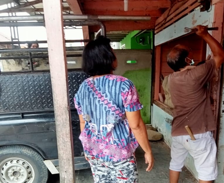 Kejadian tersebut dia saksikan secara langsung, tiba-tiba oknum Kepala Lorong datang dengan membawa palu serta linggis kemudian merusak bagian pintu dan pintu sorong rumahnya, kemudian pintunya langsung dibawa.