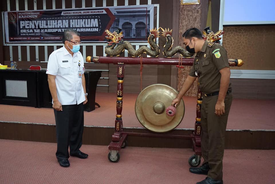 Pantauan dilapangan, acara Penyuluhan di buka dengan di tandai dengan pemukulan gong oleh Kasi Intel Kejaksaan Karimun Susanto Martua dan didampingi oleh Kadis PMD Kabupaten Karimun H. Suwedi.