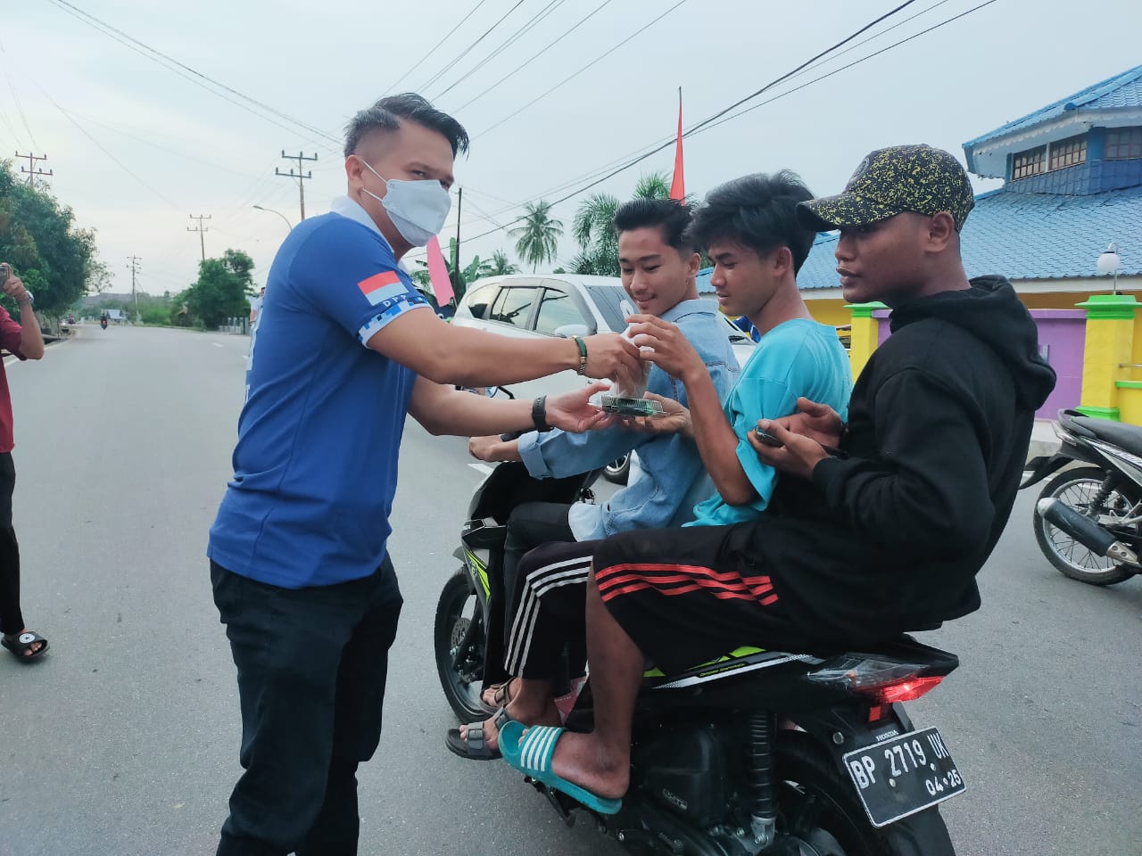 “Hari ini kita membagikan Takjil sebanyak tiga ratus lima puluh paket kue berserta bubur dan ini merupakan kegiatan rutin kita dibukan suci Ramadhan, sebagai pendekatan kepada masyarakat Kabupaten Karimun,”katanya.