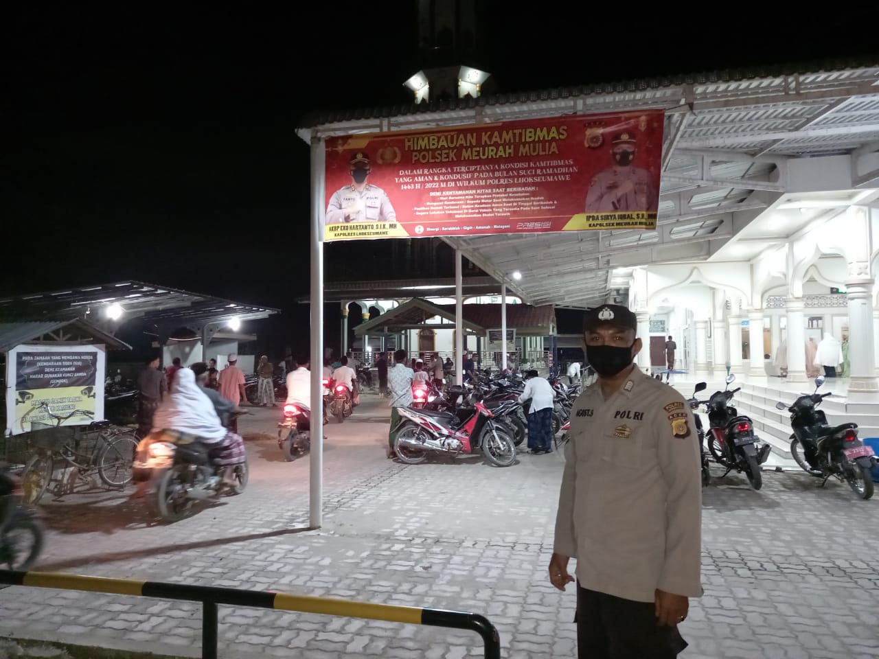 LHOKSEUMAWE, Potretnusantara.id – Personel Polres Lhokseumawe dan Polsek jajaran melakukan pengaman selama pelaksanaan ibadah shalat Isya dan Tarawih di masjid dan meunasah (surau) di wilayah hukum Polres Lhokseumawe, Sabtu (2/4/2022) malam.