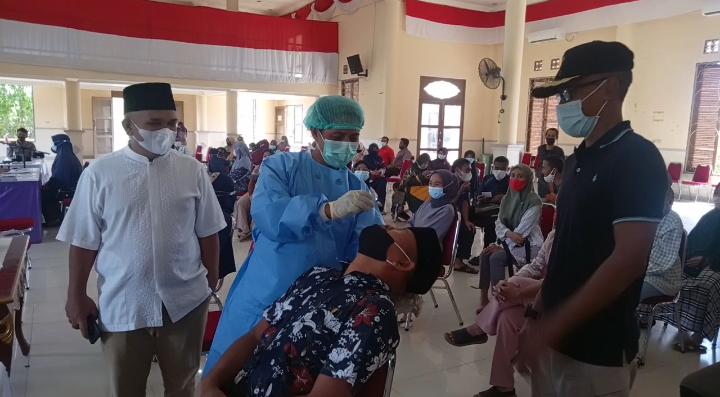 Bersama Plt Camat Bunguran Timur, Hamid Asnan, politisi Partai Nasdem ini mengecek meja antrian sampai ke proses pengambilan antigen oleh petugas kesehatan dari Puskesmas Ranai.